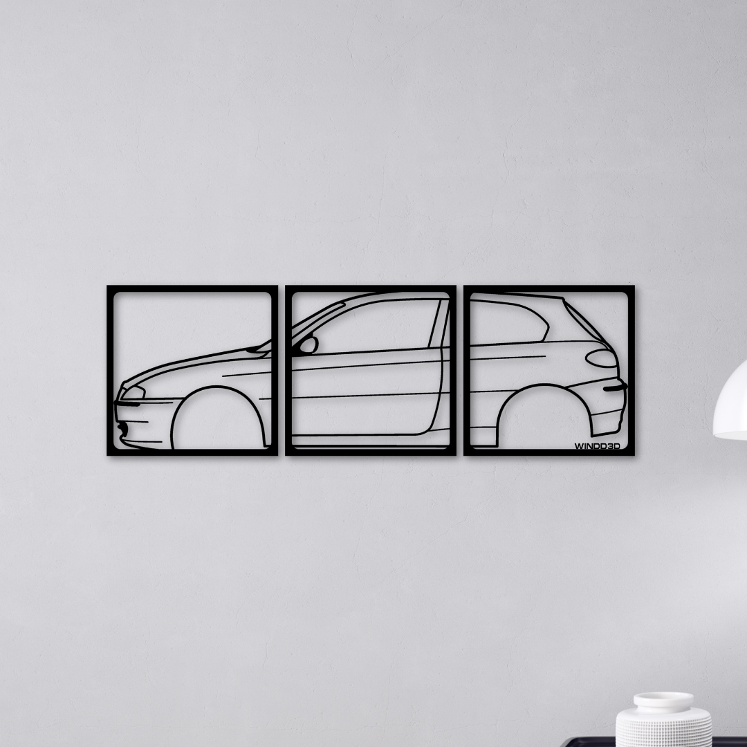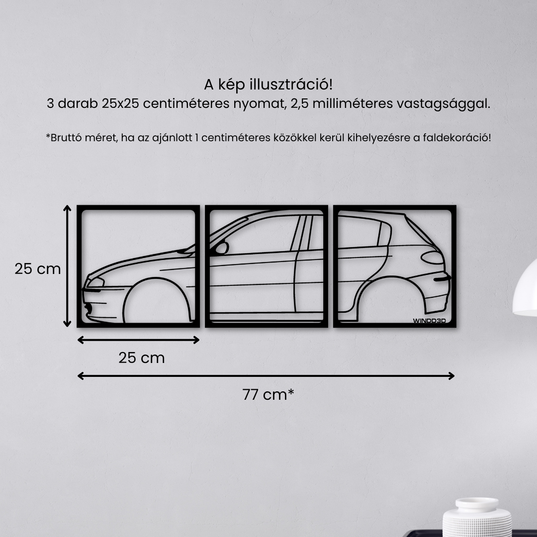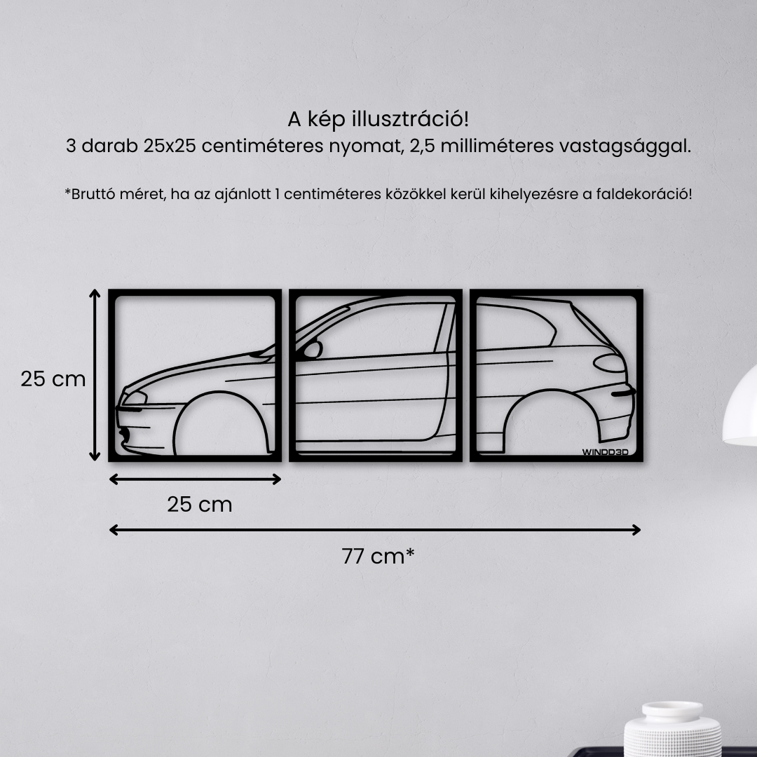 Ez a 3 részes autó sziluett faldekor azoknak készült, akik igazán karakteres és figyelemfelkeltő autós dekorációt keresnek. A több elemből álló kialakítás erőteljes, rétegzett hatást kelt, amely azonnal fókuszponttá válik bármely térben.