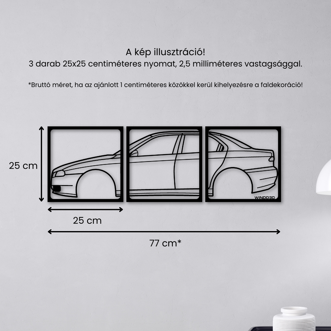 Ez a 3 részes autó sziluett faldekor azoknak készült, akik igazán karakteres és figyelemfelkeltő autós dekorációt keresnek. A több elemből álló kialakítás erőteljes, rétegzett hatást kelt, amely azonnal fókuszponttá válik bármely térben.