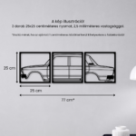 A sziluett három különálló elemből áll, amelyek együtt dinamikus, térhatású kompozíciót alkotnak. Tökéletes választás garázsba, man cave-be, modern nappaliba vagy irodai környezetbe.