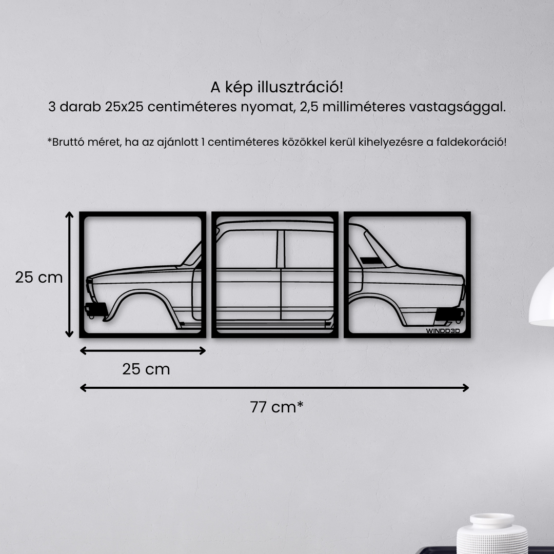 Ez a 3 részes autó sziluett faldekor azoknak készült, akik igazán karakteres és figyelemfelkeltő autós dekorációt keresnek. A több elemből álló kialakítás erőteljes, rétegzett hatást kelt, amely azonnal fókuszponttá válik bármely térben.