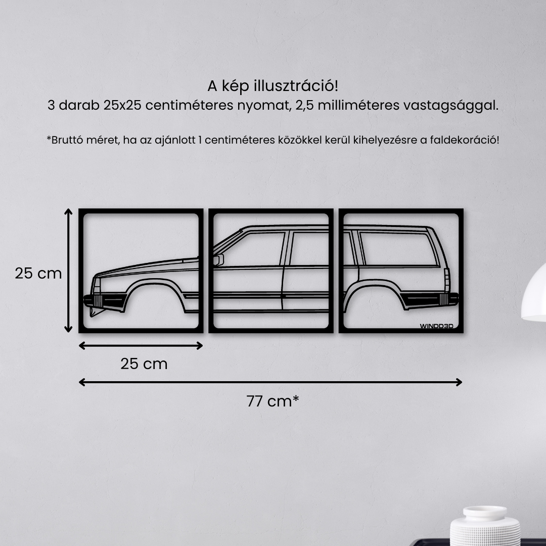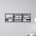 Ez a 3 részes autó sziluett faldekor azoknak készült, akik igazán karakteres és figyelemfelkeltő autós dekorációt keresnek. A több elemből álló kialakítás erőteljes, rétegzett hatást kelt, amely azonnal fókuszponttá válik bármely térben.