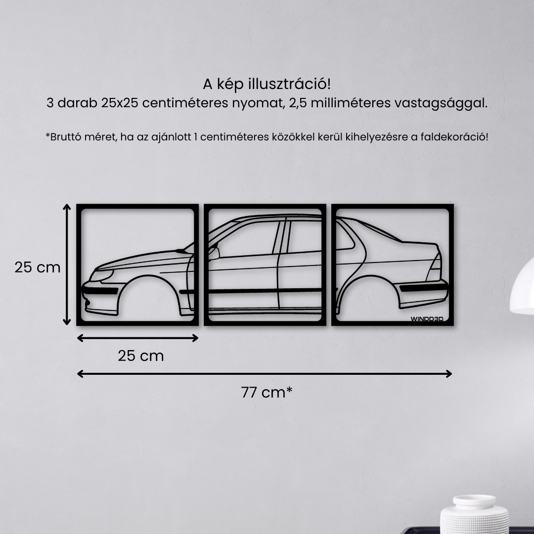 Ez a 3 részes autó sziluett faldekor azoknak készült, akik igazán karakteres és figyelemfelkeltő autós dekorációt keresnek. A több elemből álló kialakítás erőteljes, rétegzett hatást kelt, amely azonnal fókuszponttá válik bármely térben.