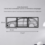 Ez a 3 részes autó sziluett faldekor azoknak készült, akik igazán karakteres és figyelemfelkeltő autós dekorációt keresnek. A több elemből álló kialakítás erőteljes, rétegzett hatást kelt, amely azonnal fókuszponttá válik bármely térben.