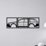 Ez a 3 részes autó sziluett faldekor azoknak készült, akik igazán karakteres és figyelemfelkeltő autós dekorációt keresnek. A több elemből álló kialakítás erőteljes, rétegzett hatást kelt, amely azonnal fókuszponttá válik bármely térben.