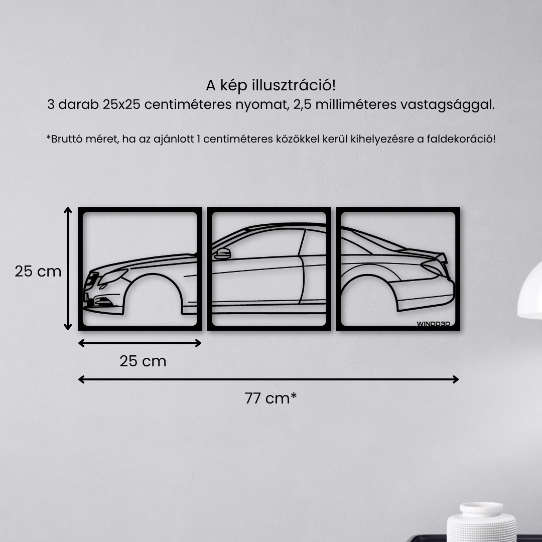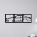 Ez a 3 részes autó sziluett faldekor azoknak készült, akik igazán karakteres és figyelemfelkeltő autós dekorációt keresnek. A több elemből álló kialakítás erőteljes, rétegzett hatást kelt, amely azonnal fókuszponttá válik bármely térben.
