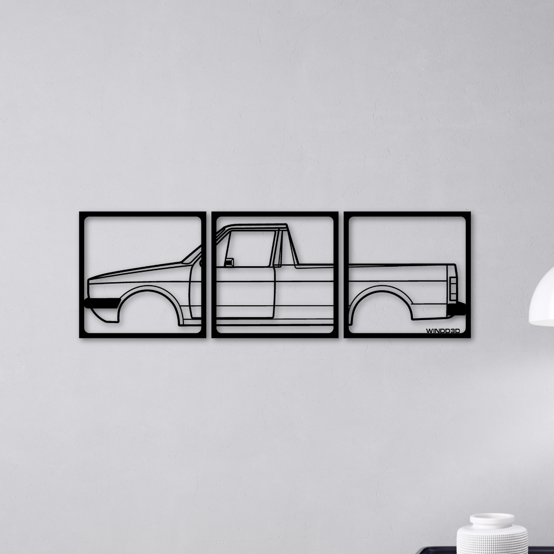 Ez a 3 részes autó sziluett faldekor azoknak készült, akik igazán karakteres és figyelemfelkeltő autós dekorációt keresnek. A több elemből álló kialakítás erőteljes, rétegzett hatást kelt, amely azonnal fókuszponttá válik bármely térben.