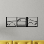 Ez a 3 részes autó sziluett faldekor azoknak készült, akik igazán karakteres és figyelemfelkeltő autós dekorációt keresnek. A több elemből álló kialakítás erőteljes, rétegzett hatást kelt, amely azonnal fókuszponttá válik bármely térben.