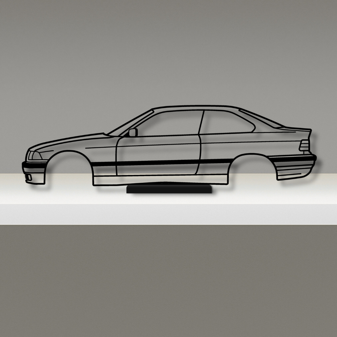 Az E36 Coupe igazi klasszikus sportos arányokkal és időtálló vonalvezetéssel. Alacsony, nyúlánk sziluettje és letisztult formái a 90-es évek ikonikus stílusát idézik, amit autórajongók generációi ismernek és szeretnek. Karakteres, mégis elegáns darab bármely térben.