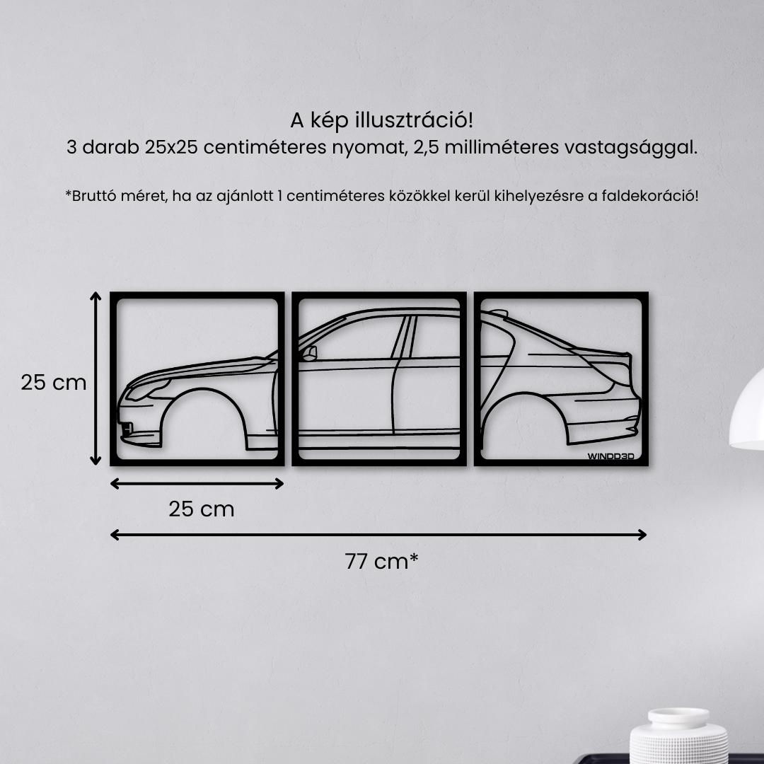 Ez a 3 részes autó sziluett faldekor azoknak készült, akik igazán karakteres és figyelemfelkeltő autós dekorációt keresnek. A több elemből álló kialakítás erőteljes, rétegzett hatást kelt, amely azonnal fókuszponttá válik bármely térben.