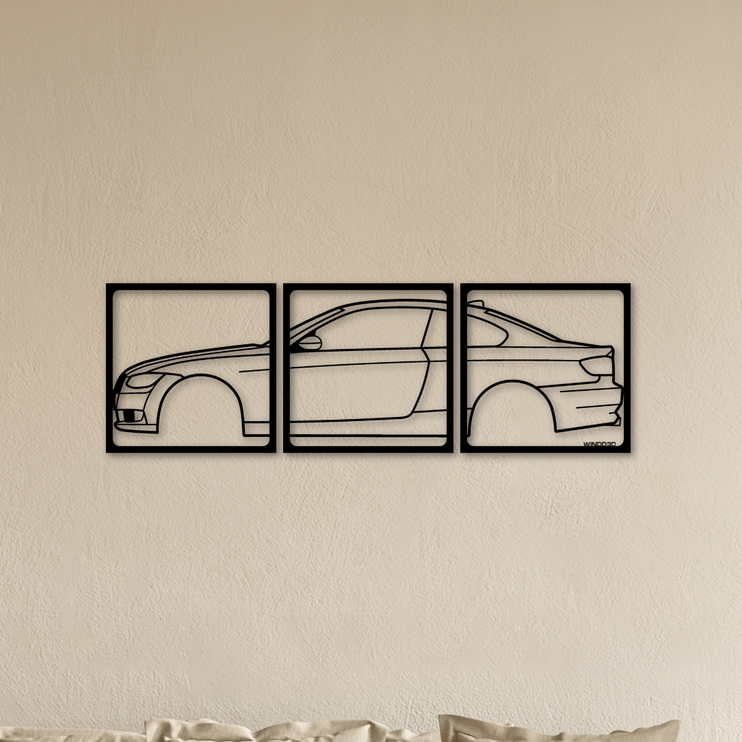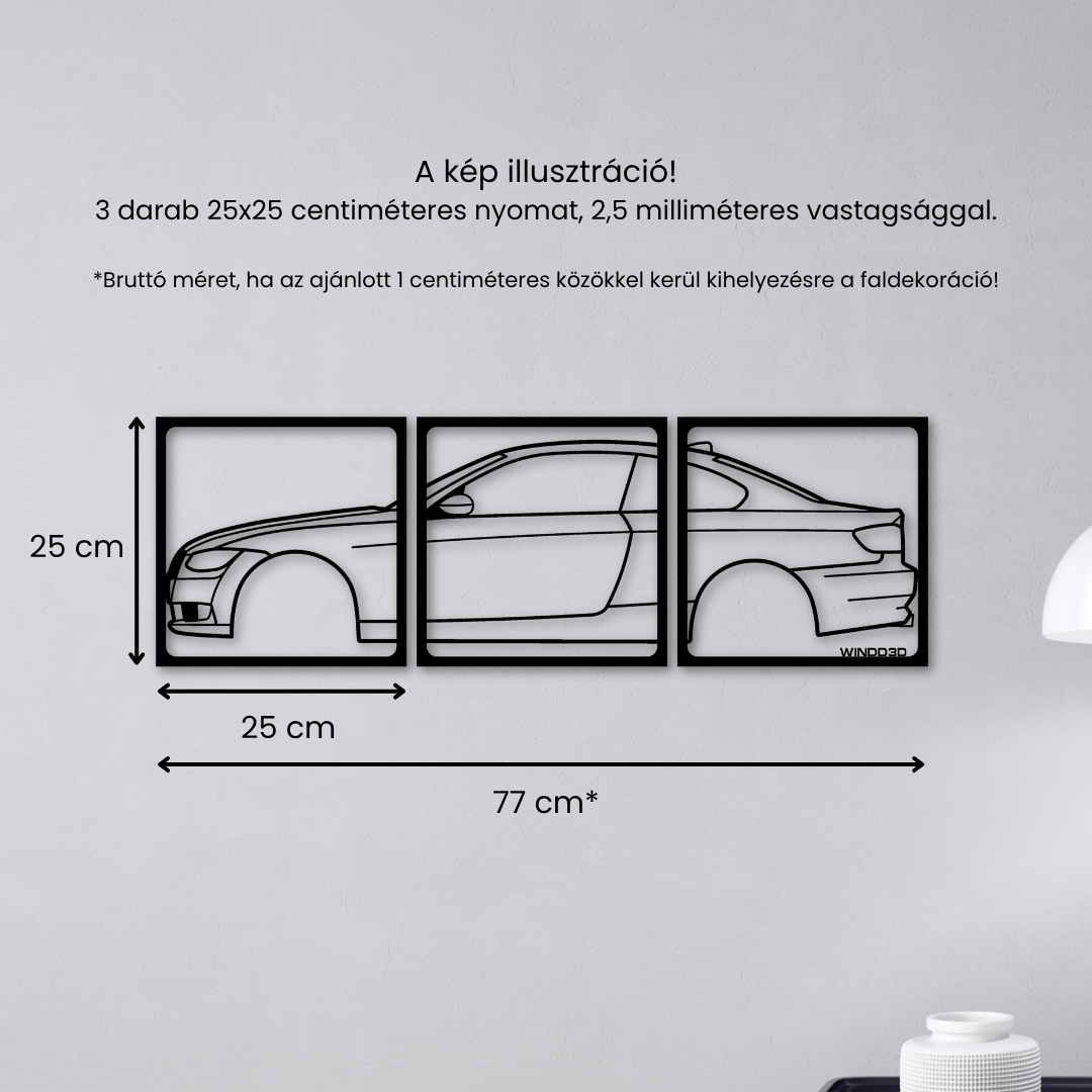 Ez a 3 részes autó sziluett faldekor azoknak készült, akik igazán karakteres és figyelemfelkeltő autós dekorációt keresnek. A több elemből álló kialakítás erőteljes, rétegzett hatást kelt, amely azonnal fókuszponttá válik bármely térben.