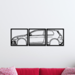 Ez a 3 részes autó sziluett faldekor azoknak készült, akik igazán karakteres és figyelemfelkeltő autós dekorációt keresnek. A több elemből álló kialakítás erőteljes, rétegzett hatást kelt, amely azonnal fókuszponttá válik bármely térben.