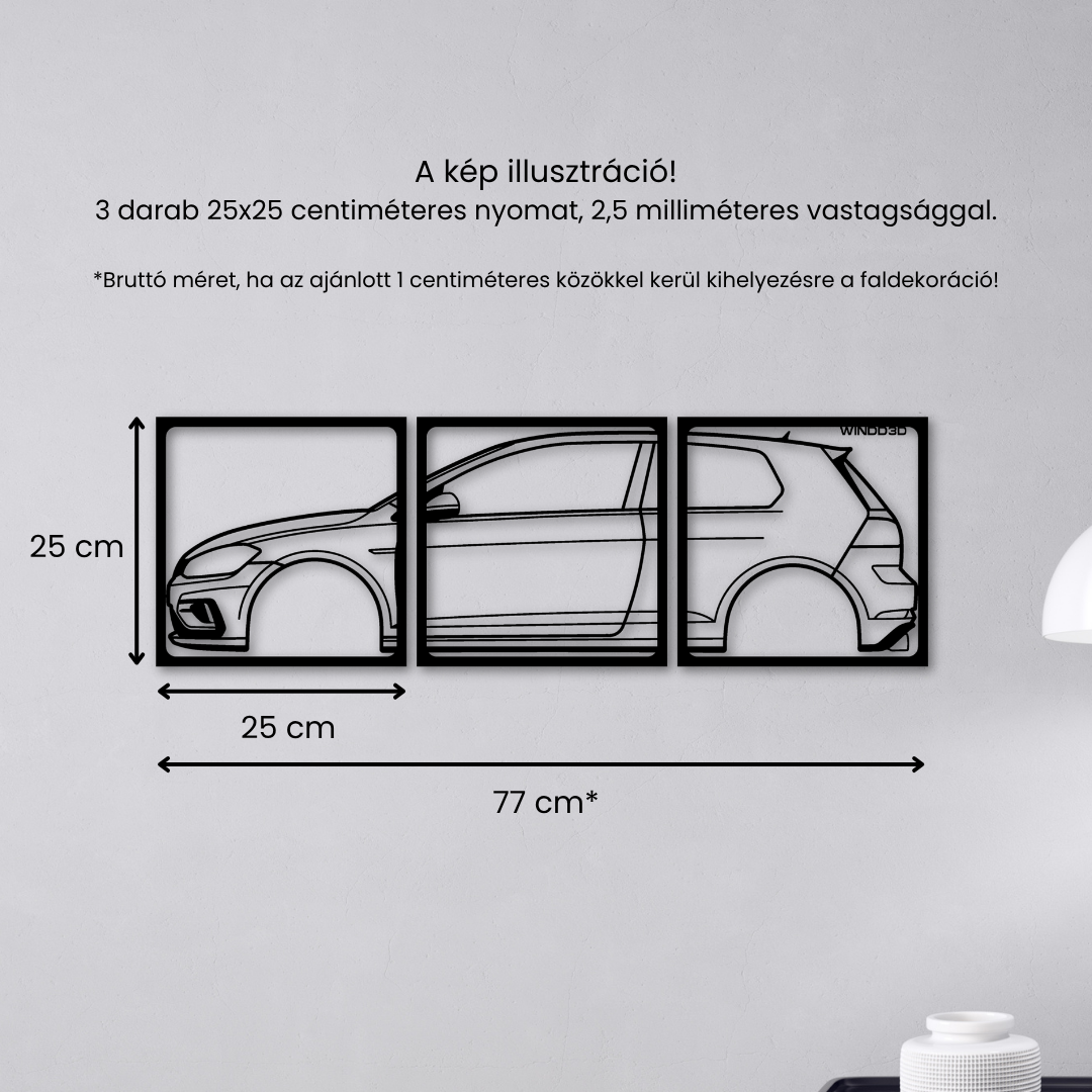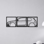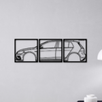 Ez a 3 részes autó sziluett faldekor azoknak készült, akik igazán karakteres és figyelemfelkeltő autós dekorációt keresnek. A több elemből álló kialakítás erőteljes, rétegzett hatást kelt, amely azonnal fókuszponttá válik bármely térben.