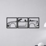 Ez a 3 részes autó sziluett faldekor azoknak készült, akik igazán karakteres és figyelemfelkeltő autós dekorációt keresnek. A több elemből álló kialakítás erőteljes, rétegzett hatást kelt, amely azonnal fókuszponttá válik bármely térben.