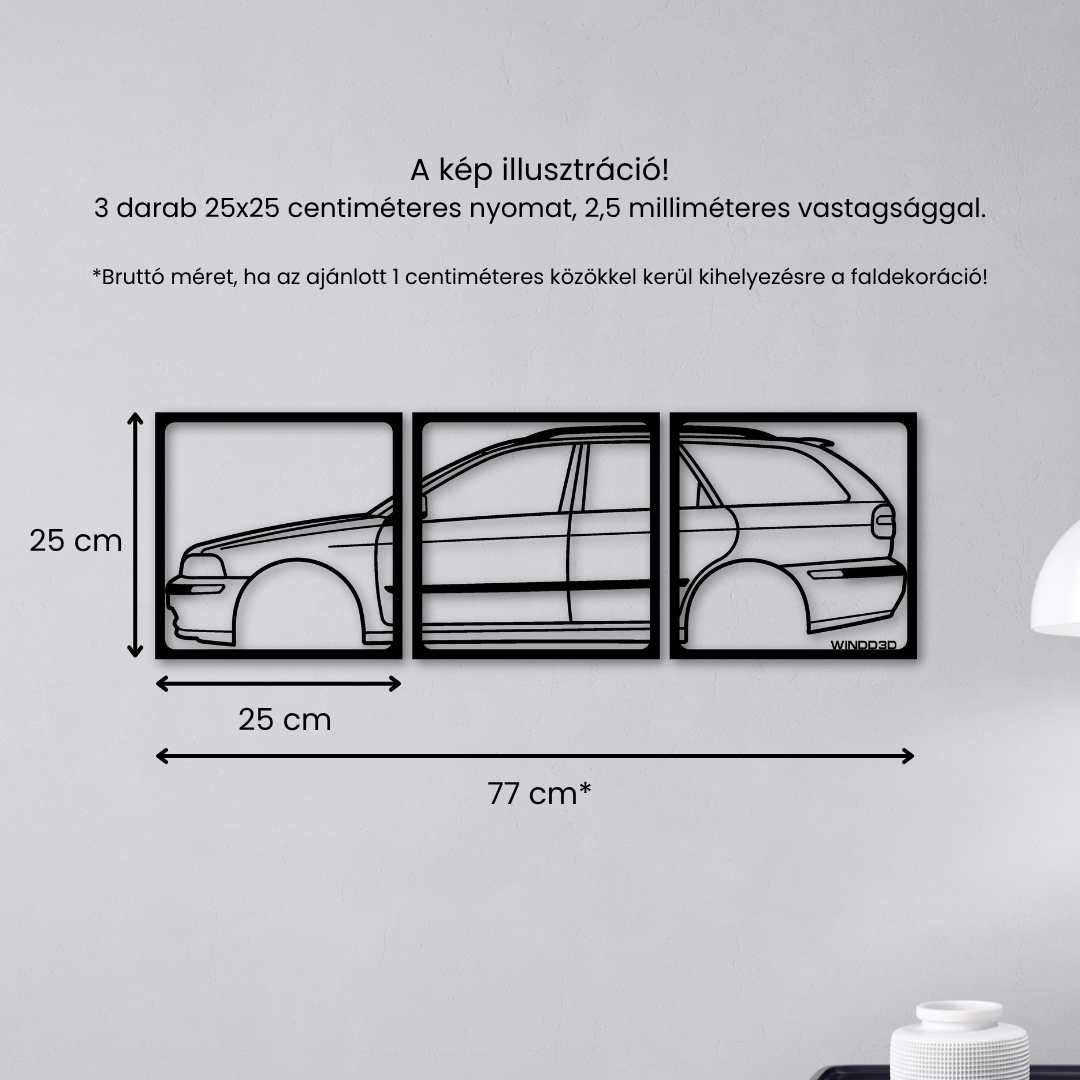 Ez a 3 részes autó sziluett faldekor azoknak készült, akik igazán karakteres és figyelemfelkeltő autós dekorációt keresnek. A több elemből álló kialakítás erőteljes, rétegzett hatást kelt, amely azonnal fókuszponttá válik bármely térben.